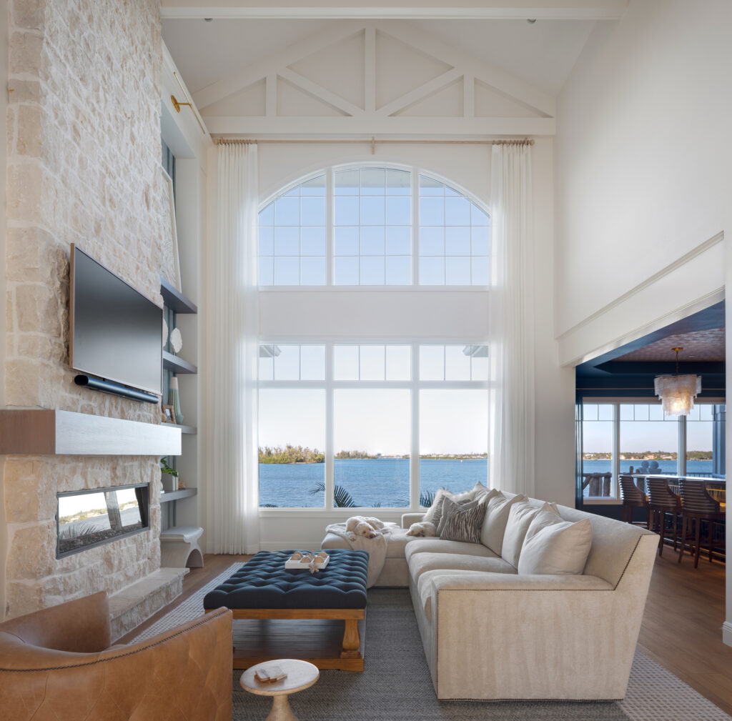 Throughout the home, thoughtful layering balances comfort with sophistication. Natural finishes, tailored details, and subtle coastal references lend warmth without overpowering the architecture. The design emphasizes a seamless connection between indoor and outdoor spaces, allowing light, air, and water views to shape the experience of the home.