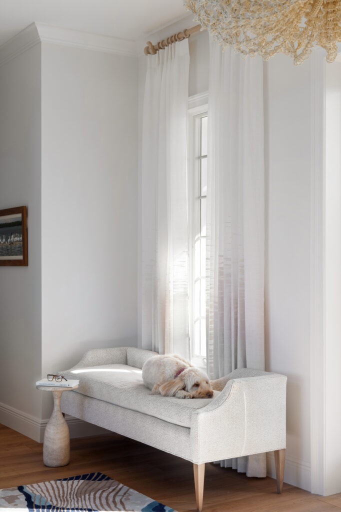 Tucked away with sweeping bay views, this residence captures the essence of serene coastal living. Breezy textures and soft seaside hues guided the selection of materials, furnishings, and styling, creating an atmosphere that feels both relaxed and refined.