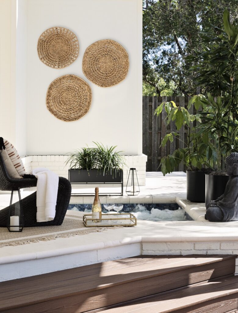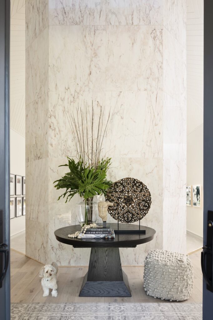 A neutral, organic palette sets a calm foundation throughout the home, layered with warm whites, soft taupes, natural stone, and richly grained woods. These elements create a refined backdrop that feels both grounded and inviting. Curated textures and understated modern details add depth and interest without overwhelming the architecture, striking a balance between tradition and a fresh, livable edge.